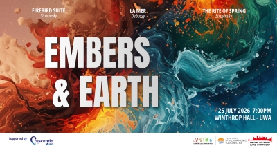 Embers & Earth brings together the West Coast Philharmonic Orchestra and the WA Wind Symphony for a powerful evening of elemental music in the grandeur of Winthrop Hall.